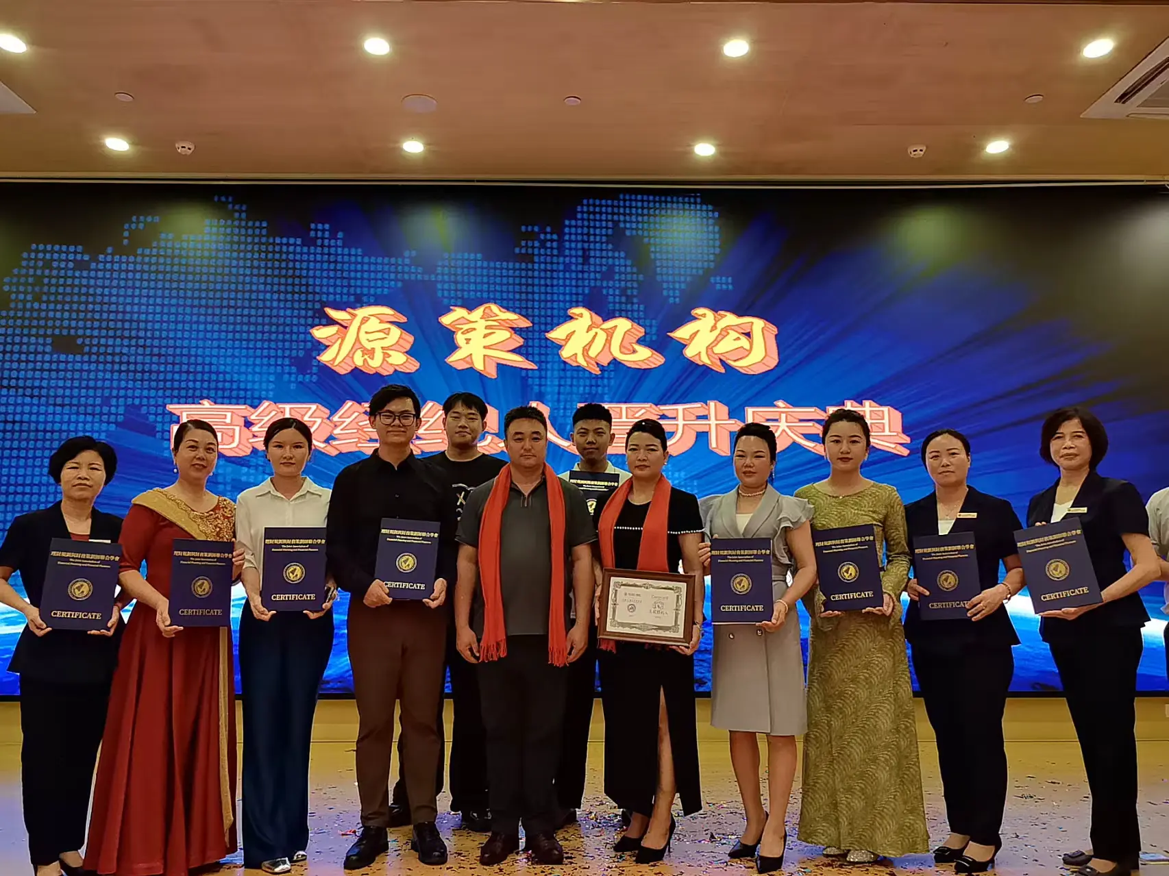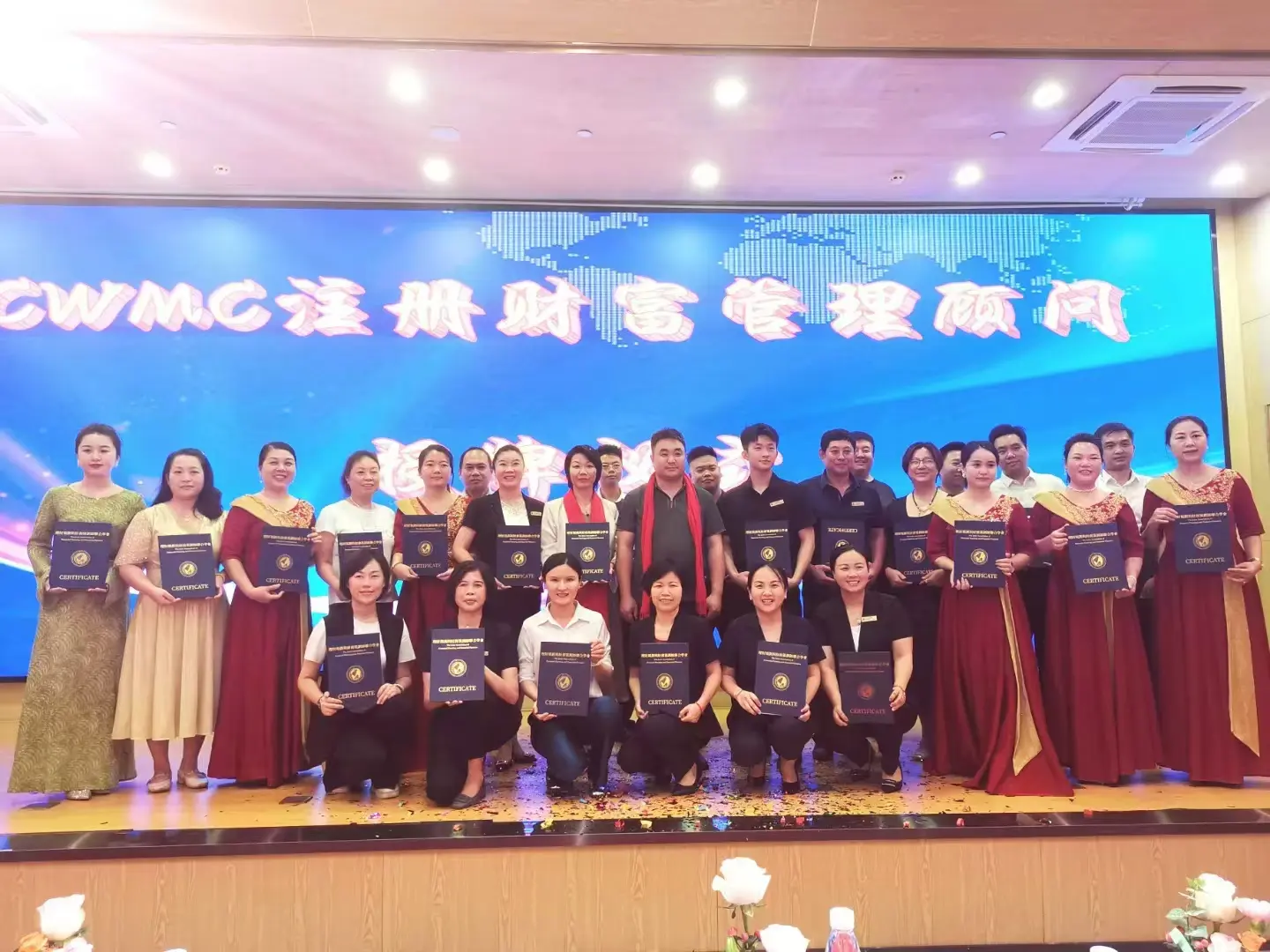 在眾人矚目中,進入 CWMC 註冊財富管理顧問證書表彰環節。一批優秀金融從業者憑藉專業能力與學習成果,獲此殊榮,他們登臺領獎、合影留念,成為現場閃耀的 “專業標杆” 。緊接著,張總鄭重為 CWMC(海口)運營中心源策機構進行授牌儀式,這一動作,是信任的傳遞,更是責任的賦予,標誌著 CWMC(海口)運營中心源策機構正式成為CWMC體系重要一環,將承載使命,助力財富管理人才培育。
