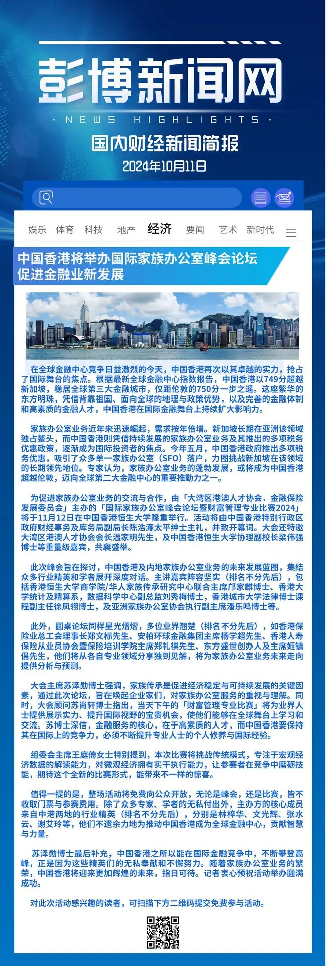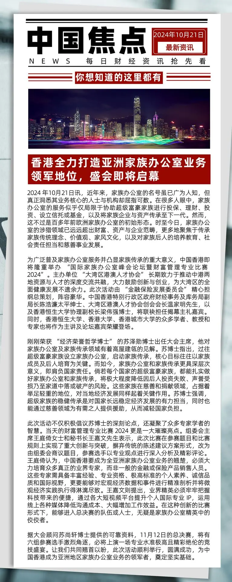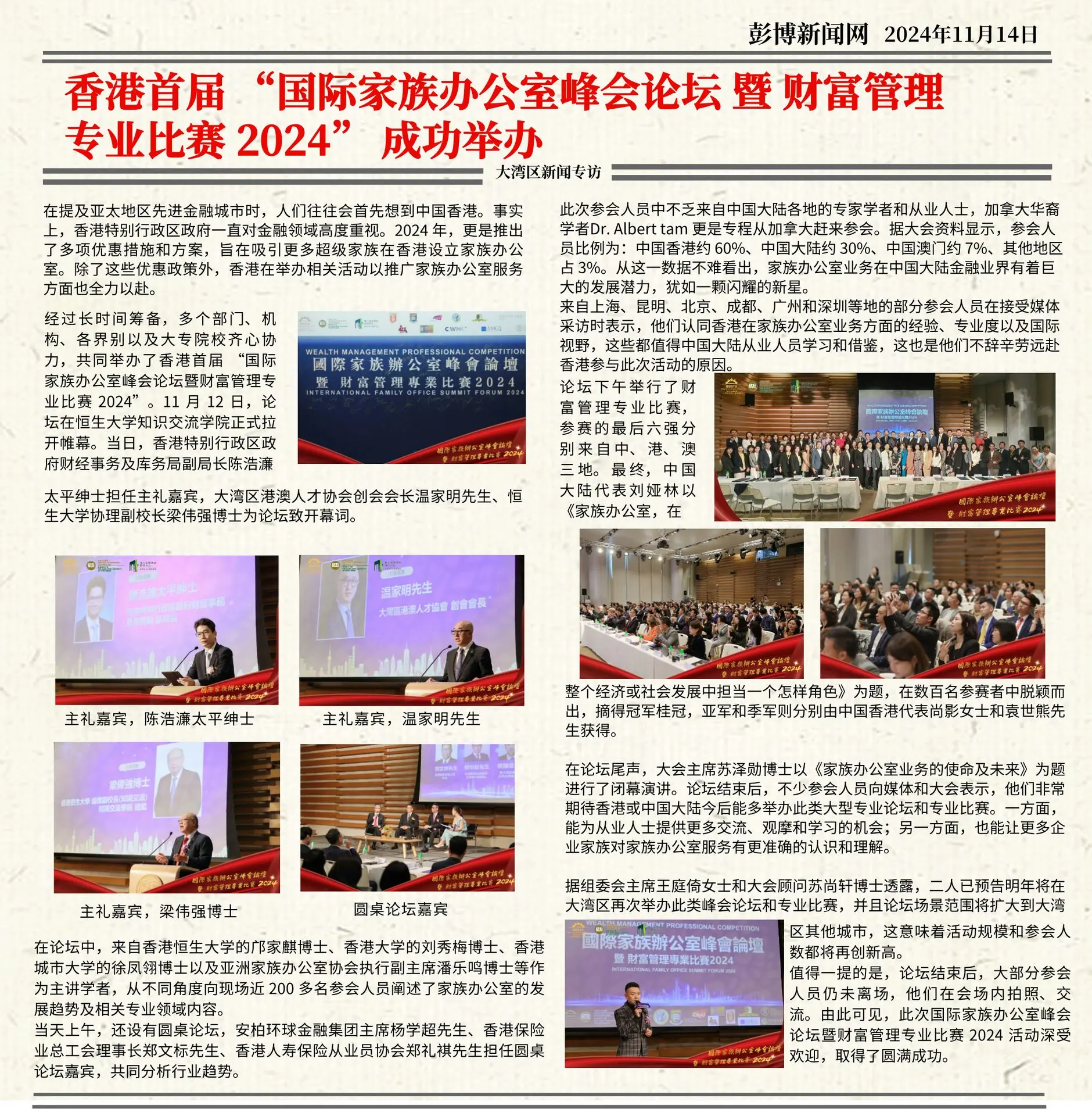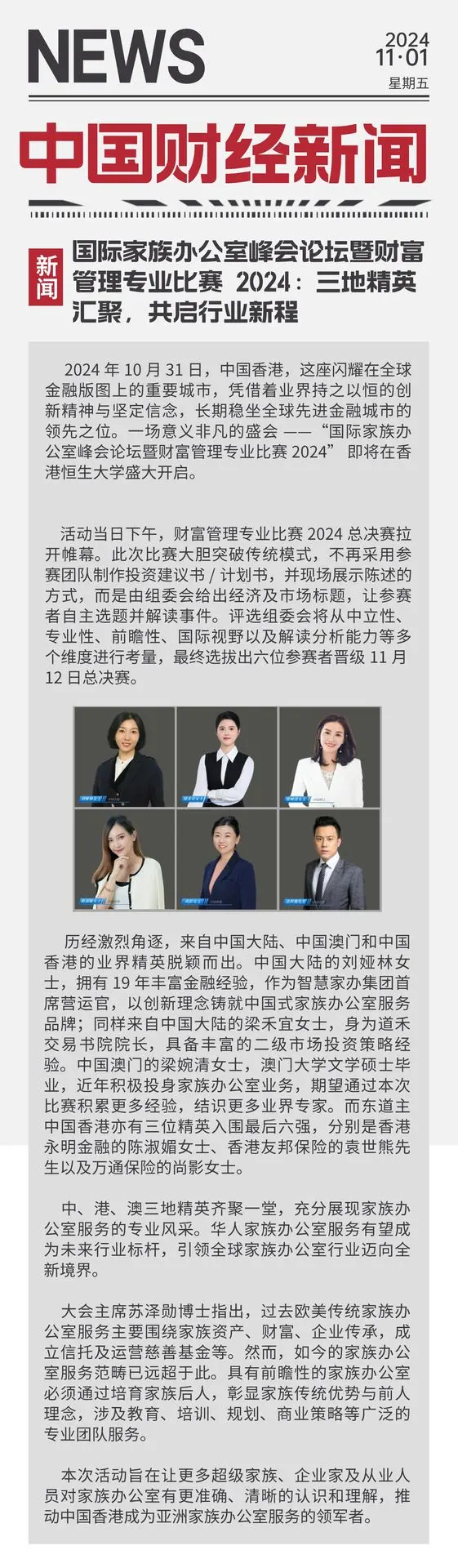 國際家族辦公室峰會論壇暨財富管理專業比賽2024:三地精英匯聚,共啟行業新程——中國財經新聞