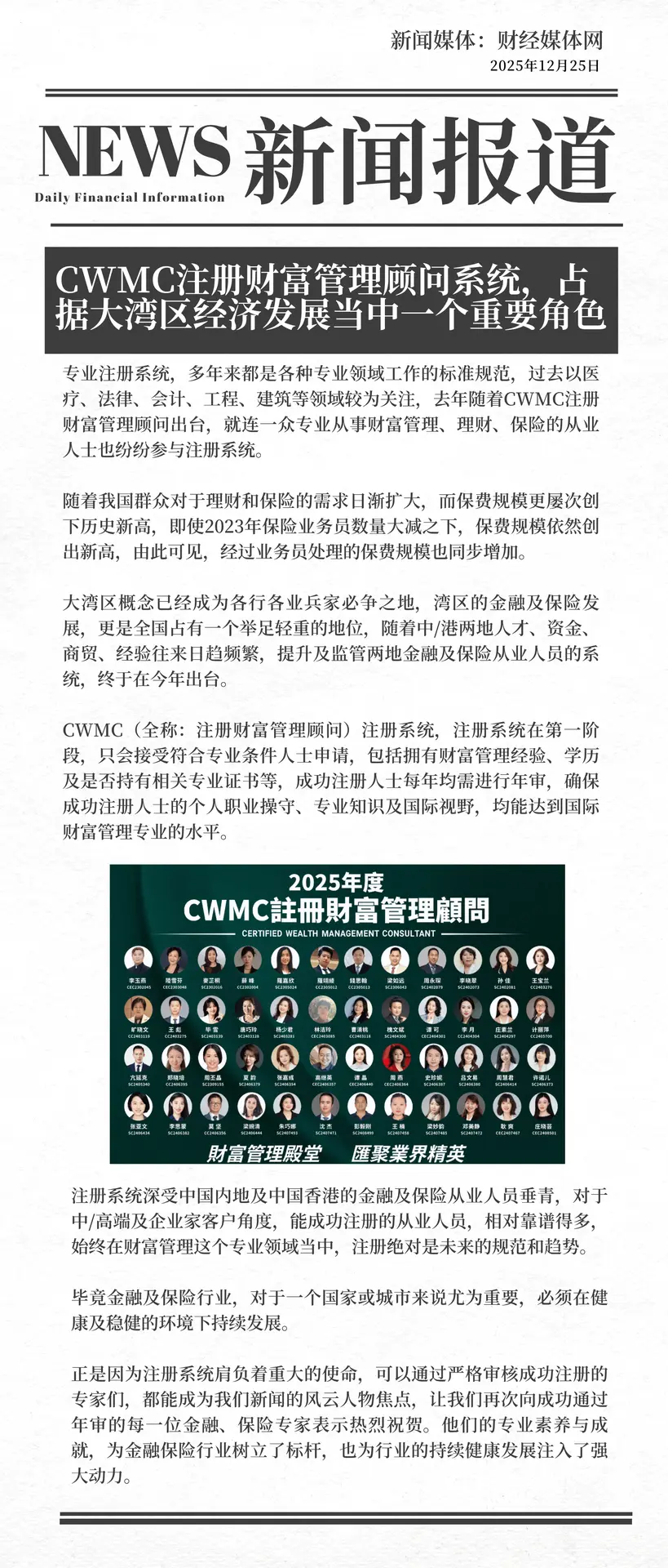 嚴格把關CWMC專業註冊系統,引領金融保險行業標準升級